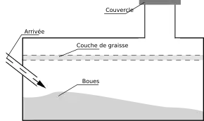 En théorie, les eaux de lavage n'y sont pas déversées, cependant une certaine quantité d'eaux grasses peut se trouver dans le bassin. La graisse surnage.