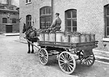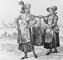 Les vidanges étaient transportées dans un vase en bois de la forme d'un cône tronqué, cerclé en fer, appelé « Tinette », bouché du haut par un tampon[3].