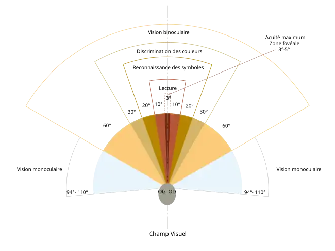 Le champ de vision de la fovéa est d'un degré[réf. nécessaire].