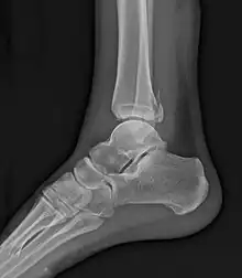 La fracture de Maisonneuve comprend une rupture du ligament deltoïde ou une fracture-avulsion horizontale de la malléole interne, associée à une longue fracture oblique de la fibula (péroné).
