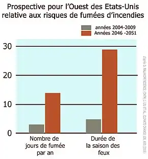 Ce phénomène pourrait empirer avec dès 2050 dans les pays occidentaux plus de 80 millions de personnes probablement concernées par une augmentation de près de 60 % du nombre de « vagues de fumée », au détriment de la santé publique et de la qualité et durée de la vie. Ceci a motivé plusieurs études encore en cours sur la mesure de la pollution, la chimie de ces fumées et l'évolution des polluants à différentes hauteurs de l'atmosphère. Ces mesures sont effectuées par des satellite, et ponctuellement via des prélèvements faits par des avions (C-130 et bientôt DC-8 et drones) directement dans les panaches de fumée de feux de forêt[20].