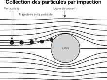 L'erreur la plus répandue consiste à supposer que seul un effet tamis est responsable de la capture des aérosols par un milieu fibreux. En réalité, l'efficacité unitaire de collection d'une fibre est fonction de plusieurs mécanismes physiques[23] :