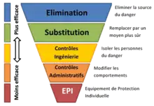 Il existe une directive-cadre européenne relative à la sécurité et à la santé au travail[21] qui oblige les employeurs à prendre des mesures adéquates pour rendre le travail plus sain et sûr. Cette directive fixe une hiérarchie des mesures de prévention.