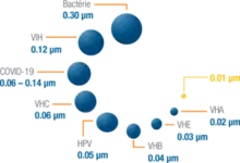 Les tailles des particules devant être filtrées sont comprises entre 200 micromètres (ou microns) et moins 0,01 micromètres.