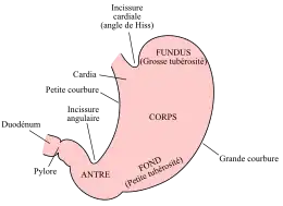 Schéma de l'estomac, montrant ses parties anatomiques