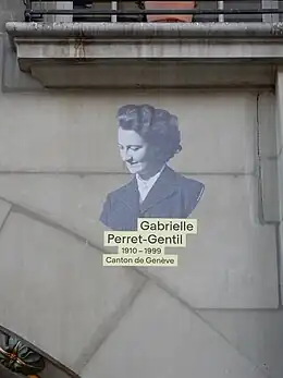 Mais la controverse fait long feu et la rue peut être officiellement inaugurée en février 2009[9]. C'est le 21e nom de femme attribué à une rue à Genève. La rue Gabrielle Perret-Gentil correspond à un segment de la rue Sautter et passe devant l'hôpital universitaire de Genève[2].