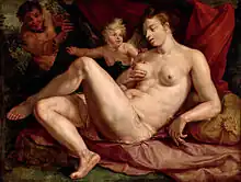 Vénus et l'Amour épiés par un satyre, dit autrefois Jupiter et Antiope (Hendrik Goltzius).