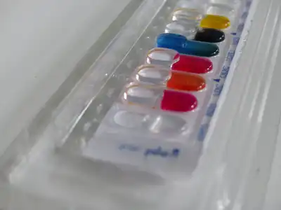 Galerie Id Staph inoculée et incubée, après addition des réactifs