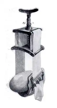 On attribue à Joseph Lister l'utilisation du garrot pour supprimer le flux sanguin avant une intervention en 1864[6]. Il recommande également l'exsanguination du membre, c'est-à-dire de diminuer la quantité de sang présente dans le membre, en le surélevant avant de poser le garrot. En 1873, Friedrich von Esmarch développe une méthode consistant à comprimer le membre avec un bandage élastique pour en chasser le sang, méthode dite du « bandage Esmarch »[7] : afin de ne pas « gâcher » le sang présent dans le membre lors de l'amputation, il serre le membre dans le bandage avant d'appliquer un garrot élastique pour couper la circulation. En 1881, Richard von Volkmann montre que le bandage Esmarch peut créer une paralysie du membre.