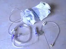 Poche d'alimentation et kit de gastrostomie.