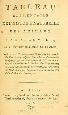 Georges Cuvier est le fondateur de la paléontologie des vertébrés. Il est traditionnellement considéré comme le promoteur de la théorie du catastrophisme[20]. Il fut également l’un des premiers naturalistes à proposer des théories basées sur le racisme scientifique.