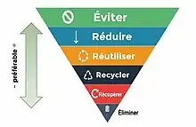 Cette hiérarchie des stratégies a évolué depuis les années 1990 mais le concept sous-jacent demeure la pierre angulaire de la plupart des stratégies de gestion des déchets : réutiliser au maximum en générant le minimum de rebuts.