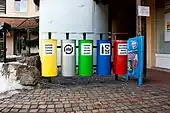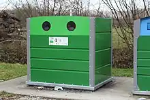 Avec les points d'apport volontaire (PAV), aussi nommés déchèteries[27], les habitants doivent se déplacer pour emmener leurs poubelles, emballages en verre et tri dans des conteneurs installés en ville ou en périphérie.