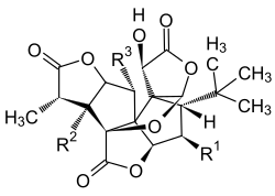 | Ginkgolide | Structure générique | R1 | R2 | R3 | N° CAS |