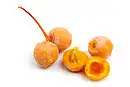 - ↑ la méthode (à quelques variantes près) consiste à 1) ramasser les fruits bien murs ou à les stocker dans un endroit humide. Retirer la pulpe à la main (attention prendre des gants en raison de risques d’érythèmes et de lésions vésiculeuses), les laver puis les égoutter 2) ébouillanter les noyaux une minute, puis casser les coquilles et retirer les amandes (qui sont fragiles mais ont été durcies par l’eau bouillante) 3) ébouillanter les amandes 5 min et retirer la fine pellicule qui les recouvre (sinon les frire à la poêle)