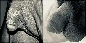 Il est présent chez la plupart des mammifères dans les organes génitaux externes des deux sexes, plus ou moins recouvert par un prépuce :