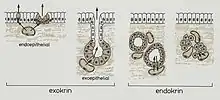 Les glandes peuvent également produire des substances qui seront libérées dans des cavités corporelles, ou à l'extérieur : ce sont les glandes exocrines chez les animaux, ou les nectaires des fleurs, etc.