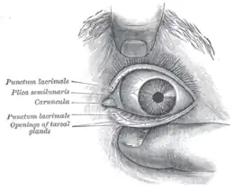 Les glandes de Meibomius sont situées dans le cartilage des paupières[1]. Elles sont au nombre de 30 à 40 par paupière, orientées perpendiculairement au bord libre protégé par les cils. Leurs orifices, visibles, sont alignés sur ce bord. Ces glandes doivent leur nom au médecin allemand Heinrich Meibom qui en fit la découverte[2].
