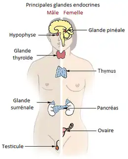 Principales glandes endocrines chez les vertébrés