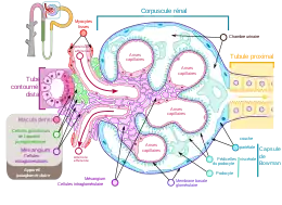 Podocyte, membrane basale glomérulaire, intraglomerular mesangial cell (en), glomerular capillary (d) |