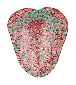 - ↑ [Collins 1974] (en) Virginia B. Collins, « Human taste response as a function of location of stimulation on the tongue and soft palate », Perception & Psychophysics, vol. 16, no 1, , p. 169-174 (DOI 10.3758/BF03203270).