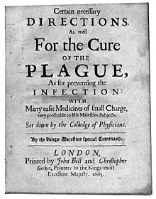 Durant le XVIIe siècle, et depuis 1603, Londres publie de manière irrégulière des Bills of mortality (bilan hebdomadaire des causes de décès, détaillées par paroisses), notamment à l'occasion d'épidémies de peste. Cette parution suscite en retour une vaste « littérature de peste » prenant la forme d'un libre débat public (parfois anonyme, ou sous initiales) sur la peste, d'un point de vue savant, politique, moral ou religieux. D'autant plus qu'après la première révolution anglaise, la monarchie restaurée en 1660 n'a plus les moyens d'imposer une censure efficace. Ce serait un premier modèle « d'information du grand public » en continu, les autorités de Londres estimant qu'une population informée était mieux capable d'affronter une épidémie, même de grande ampleur[13].