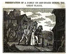 Les victimes de la peste sont enfermées chez elles et, pour éviter tout contact avec l'extérieur, leurs familles sont enfermées à leur côté, même lorsque les membres de ces familles sont sains. Une croix rouge ou blanche, ou l'inscription Lord have mercy « Seigneur prends pitié » sont dessinées ou marquées sur la porte des contaminés[15].