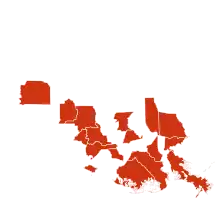 Rouge : infection confirmée. Jaune : cas suspects. Noir : morts.