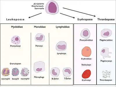 On peut également classer les hémopathies suivant l'origine de la cellule touchée :