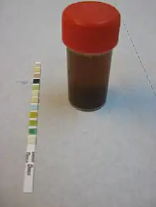 - si le surnageant est rouge mais reste négatif à la bandelette urinaire, on peut évoquer une porphyrie (les urines initialement de couleur normale se teintent progressivement), l'ingestion de betteraves, ou l'utilisation de phénazopyridine (analgésique urinaire).