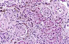 L'hémosidérine est une substance moléculaire complexe de stockage du fer chez les animaux. Elle constitue une forme de stockage insoluble du fer, dont la mobilisation est plus lente que pour le fer contenu dans les molécules de ferritine libres[1]. Sa composition n'est pas fixe, elle est formée par un agrégat de plusieurs centaines à plusieurs milliers de molécules de ferritine, de protéines dénaturées et de lipides[2].