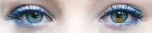 - Kogasa Tatara, un personnage de la série de jeux vidéo Touhou Project a un œil rouge et l'autre bleu.