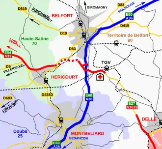 - ↑ Thierry Campredon, « "La construction du nouvel hôpital Nord Franche-Comté est une erreur", selon l'association des médecins urgentistes », sur France Bleu Belfort Montbéliard, (consulté le ).