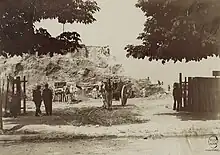 Travaux de 1902 détruisant une partie des Buttes Chaumont pour la construction de l'hôpital. Photographie conservée au Musée Carnavalet