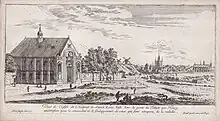 L'hôpital Saint-Louis avec, au loin, la porte et la tour du Temple, par Israël Silvestre - ca. 1650