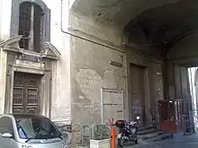 Le portail de l'église, avec un escalier en piperno, se trouve à gauche de l'entrée nord du centre hospitalier. L'élément architectural, bien qu'aujourd'hui presque en état de ruine, le plus notable de la façade est l'escalier en forme de tenaille datant du XVIIIe siècle qui mène de la cour de l'Hôpital des Incurables à l'antichambre de l'église[10].