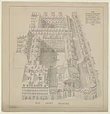 En 1779, sous le règne de Louis XVI, le cardinal de Rohan fit transférer l'établissement rue de Charenton, dans le faubourg Saint-Antoine. Par lettres patentes du [8], le roi ordonne la création de plusieurs rues à l'emplacement de l'ancien hospice des Quinze-Vingts : rue de Beaujolais-Saint-Honoré, rue de Chartres-Saint-Honoré, rue de Montpensier-Saint-Honoré, rue des Quinze-Vingts, rue de Rohan, rue de Valois-Saint-Honoré[9]. Toutes ces rues, à l'exception de la rue de Rohan, ont été supprimées lors du prolongement de la rue de Rivoli et l'achèvement du palais du Louvre dans les années 1850.
