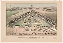 Les principes de Nightingale inspirent l'hôpital Lincoln de Washington, organisé en 21 pavillons disposés en V encadrant des bâtiments administratifs et de service[19]. Hôpital militaire transitoire (1862-1865) lors de la guerre de Sécession, situé sur une partie de l'actuel Lincoln Park, il a été démoli à la fin de cette guerre.