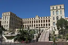 Érigé à partir de 1753 sur les plans et élévations de Jacques Hardouin-Mansart de Sagonne, l'Hôtel-Dieu de Marseille est un ancien hôpital marseillais situé dans le quartier du Panier. Au moment des festivités de Marseille-Provence 2013, l'Hôtel-Dieu a été transformé en hôtel 5 étoiles, géré par le groupe hôtelier britannique InterContinental sous le nom d'InterContinental Marseille Hotel Dieu[2]. La rénovation de l'hôpital en hôtel a pris fin le . Il est desservi par la station