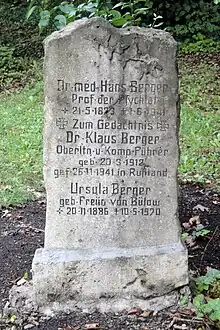 Le , pris d'un accès de mélancolie, Hans Berger se suicide par pendaison dans l'aile sud de la clinique médicale II à Iéna. Il avait passé ses dernières années dans le sanatorium pour patients atteints de maladies nerveuses dont il était le directeur à Bad Blankenburg. Il est enterré à Iéna[7].