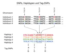 Un haplotype est un groupe d'allèles de différents loci situés sur un même chromosome et habituellement transmis ensemble. Haplotype est un mot-valise formé par la contraction de la locution anglaise haploid genotype, ou génotype haploïde.