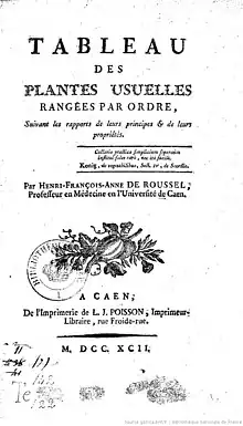 - ↑ Auguste Surville, "Notice historique sur Henri-François-Anne de Roussel, professeur de médecine et d'histoire naturelle à Caen, dans Le Pays-Bas-normand, n°3, juillet/août/septembre, 1911, p.176