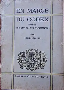 - En marge du Codex, Notes d'Histoire Thérapeutique, Masson, Paris, 1924