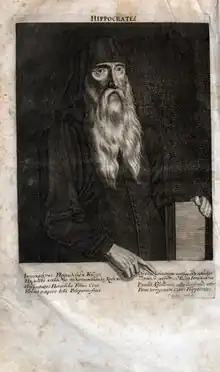 Hippocrate de Kos, ou simplement Hippocrate (du grec Ἱπποκράτης / Hippokrátês), né vers 460 avant J.-C. sur l’île de Kos et mort vers 377 av. J.-C. à Larissa, est un médecin et philosophe grec du siècle de Périclès, considéré traditionnellement comme le « père de la médecine ».