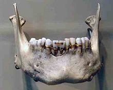 Dans le livre paru au milieu du Xe siècle, Liber Regius, le médecin arabe Ali Abbas (ʿAli ibn al-ʿAbbās, † 944) recommande aussi l'utilisation d'arsenic pour la dévitalisation (nécrose) de la pulpe[51]. L'oxyde d'arsenic trivalent est utilisé jusqu'à récemment pour la dévitalisation de la pulpe dentaire et ne disparait que dans les années 1970 en raison de son action cancérogène, des inflammations du parodonte, de la perte d'une ou plusieurs dents, de la nécrose de l'os alvéolaire voisin ainsi que des allergies et des symptômes d'empoisonnement[52]. Quelques indications sur les soins à apporter aux dents et à leurs maux se trouvent dans les œuvres du grand savant juif médiéval Maimonide (1135/38−1202). Il ne peut s'appuyer que sur quelques passages du Talmud. Un d'entre eux interdit à un prêtre (cohen) le service divin quand il lui manque des dents, parce qu'un tel cohen est méprisable[53].