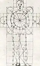 « Vitruve dit, dans son ouvrage sur l'architecture : la Nature a distribué les mesures du corps humain comme ceci: