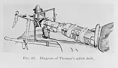 La " clé de Hugh Thomas " est conçue pour réduire les fractures[10]. et corriger les pieds bots. Le pied bot était roulé entre les deux cylindres les plus courts pour le corriger de force[14]. .