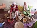 Fabrication traditionnelle de l'huile d'argan au Maroc à partir des fruits de l'arganier.