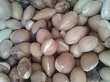 Fruits de l'arganier concassés.