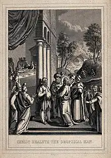 Dans l'évangile de Saint Luc, on trouve au chapitre 14, versets 1 à 6, le récit de la guérison d'un hydropique, par Jésus de Nazareth, un jour de sabbat, mais aucun symptôme n'est décrit[5].